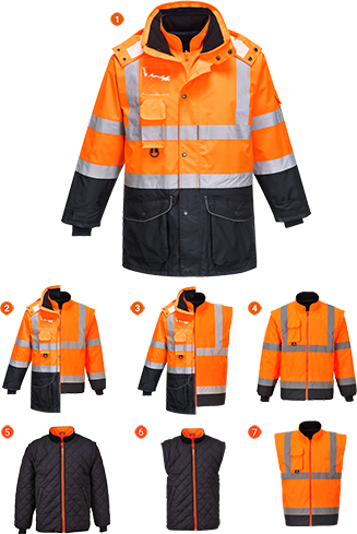 This highly innovative and functional Portwest jacket that offers seven wearer combinations. This versatile jacket is highly adaptable to all weather conditions and is certified to the highest in waterproof and breathable standards. Features include fleece lined collar for optimum warmth and comfort, radio loop, D-ring, ID holder, multiple pockets for ample storage, reflective piping, detachable hood for easy storing and print access for corporate branding.